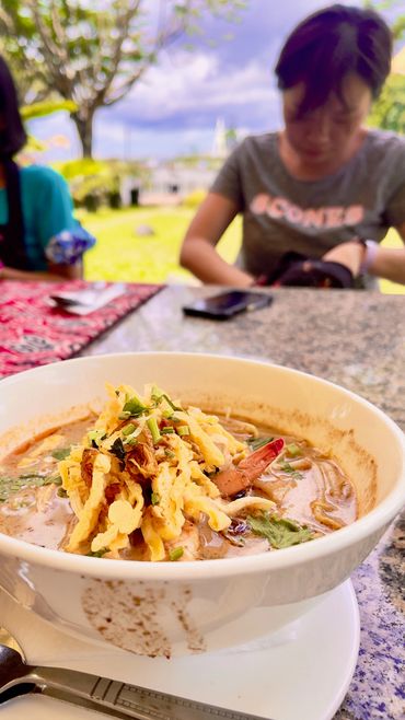 For lunch, I immediately tried some of the local specialities, like the Sarawak Laksa noodle soup, and one of the fruit juice, freshly squeezed from the kitchen: delicious, like all the food we would sample during our trip (spoiler alert!)